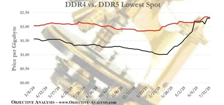 然而,从2025年4月开始,DDR4系列的单价开始大幅上涨,到同年6月将突破2美元,与DDR5系列的价格大致持平。更重要的是,DDR5系列的单价从2025年3月开始也呈现上涨趋势。这表明整个DDR系列都出现了供应短缺的情况。