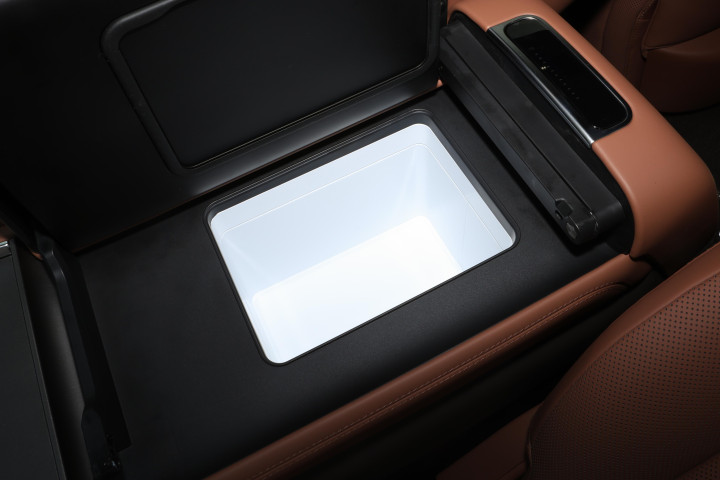 储物细节同样贴合家庭需求:全车49处储物格+51L底盘隐藏储物格,能轻松收纳奶瓶、零食、儿童玩具等琐碎物件,门板槽可容纳1.5升水瓶,中控台下方镂空区域适配随身背包。满员状态下,后备厢仍有407L容积,可容纳两个20寸行李箱+露营装备,比理想L8多装一套婴儿车,彻底化解满员出行的装载焦虑。此外,冷暖三开门冰箱、二排小桌板、后排毫米波雷达儿童遗忘监测等实用配置均为标配,精准戳中奶爸奶妈需求。